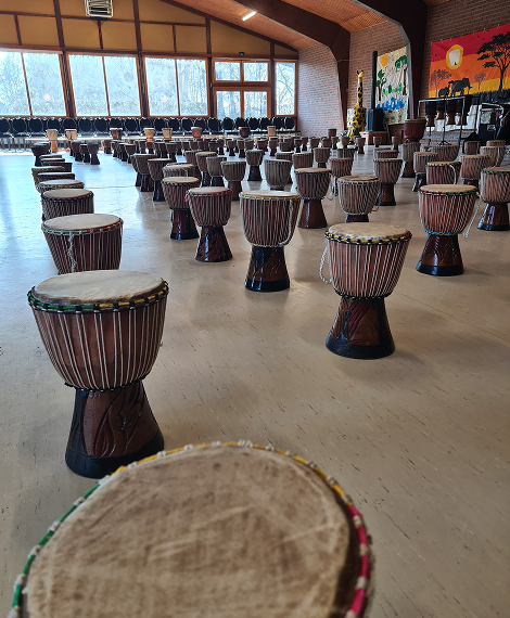 Alle 4 Jahre geht es während einer Projektwoche an der Grundschule Stapelfeld auf eine musikalische Reise nach Afrika. Trommeln, Singen und Tanzen macht den Kopf frei und entspannt. Gefühle, ganz gleich welcher Art, können ausgedrückt und damit schon in einem ersten Schritt verarbeitet werden. Kinder, die sich ansonsten manchmal im Alltag zu wenig bewegen, werden durch Tänze in Bewegung gebracht. Kinder, die durch zu viel Medienkonsum ungünstig beeinflusst sind, fangen an, sich selbst zu spüren.